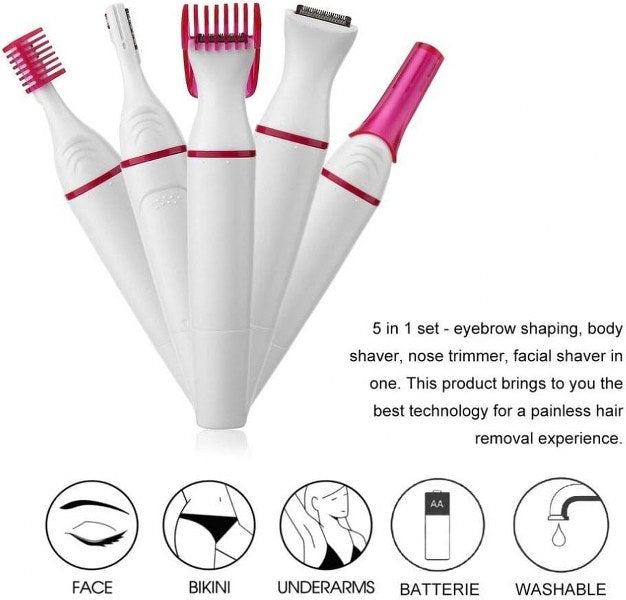 5-in-1 Electric Eyebrow Trimmer for Women | Painless Facial Hair Remover, Nose Trimmer, Bikini Shaver & Body Hair Epilator | Best Women Gift