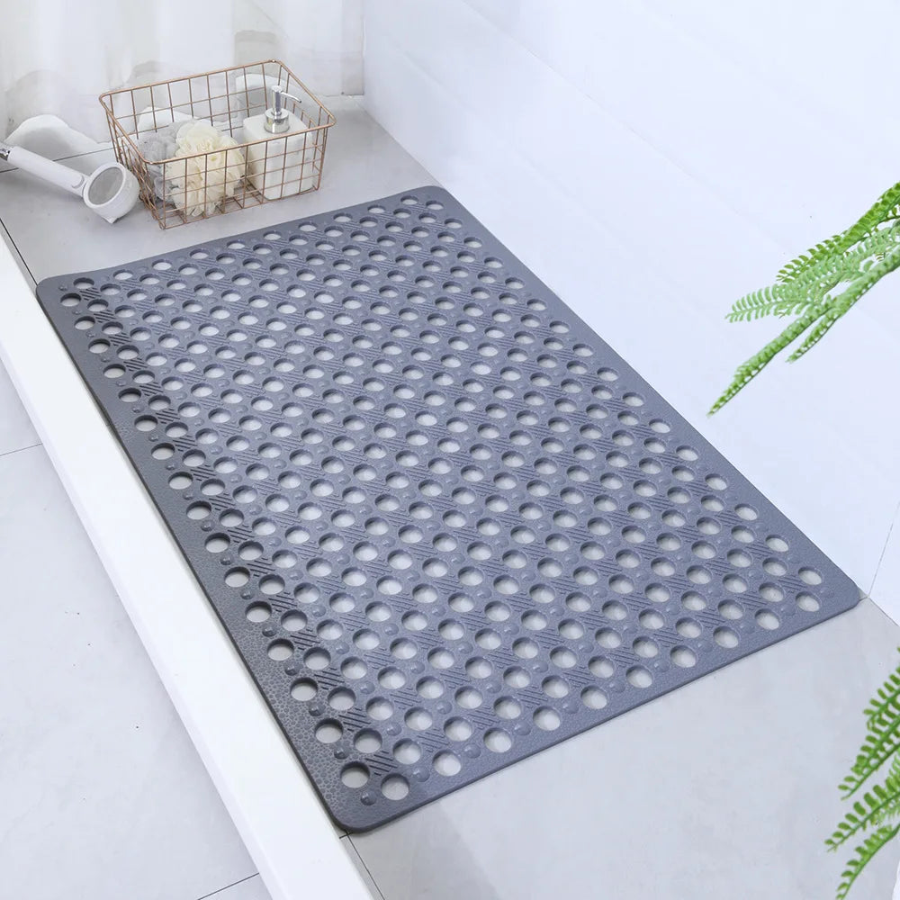 Crafted from high-quality, odorless PVC, this bath and shower mat features a biomimetic suction grip system and round-hole drainage design to prevent slipping while allowing fast water flow and easy cleaning.
