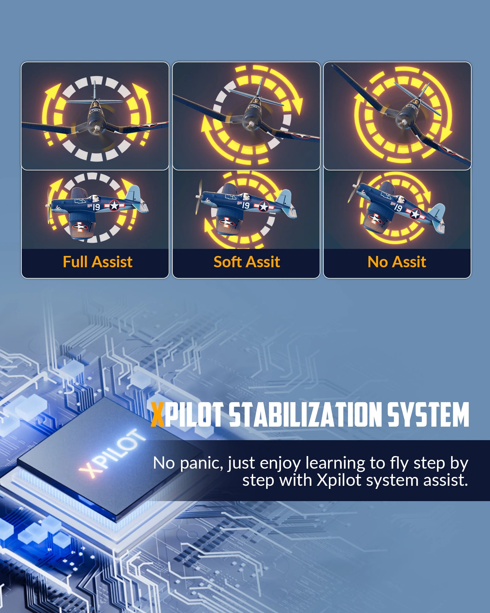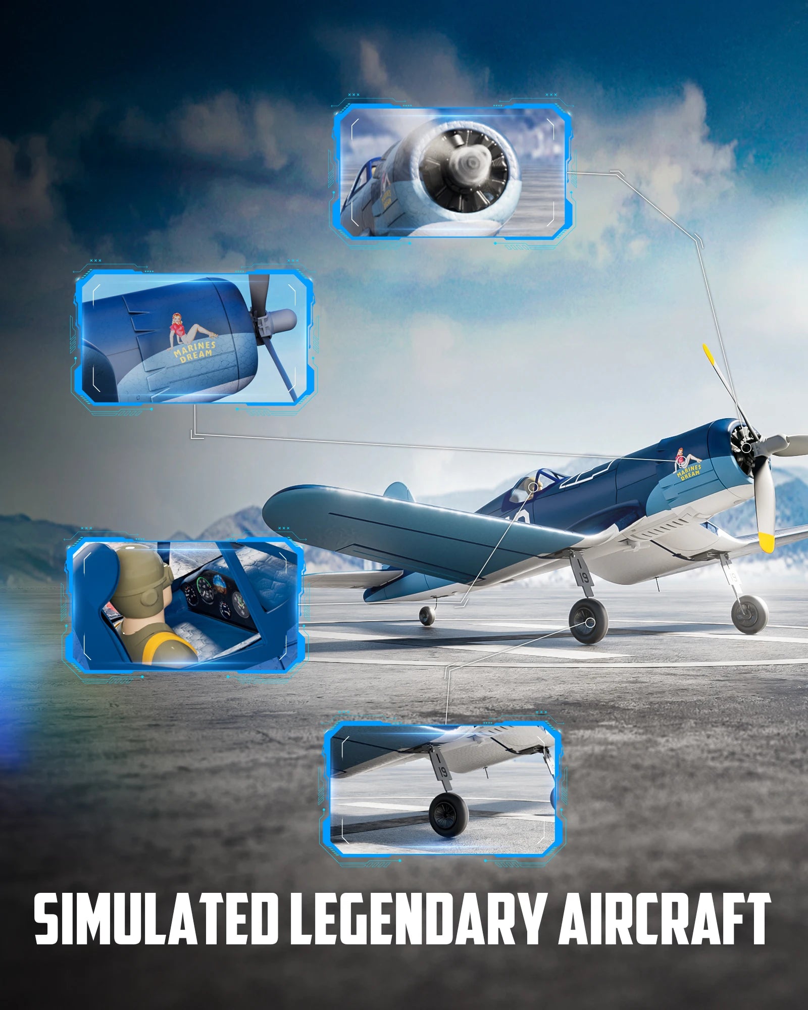Brushless F4U Corsair RC Plane for Adults,4-Channel RTF Airplane with One-Key Aerobatics & 3 Flight Assist Modes, Outdoor High-Performance RC Aircraft
