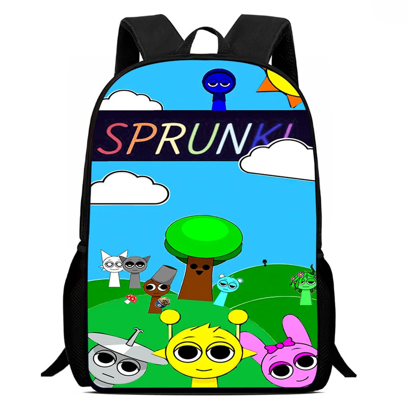 Artistic Bold SPRUNKI Cartoon Game Printed Kids School Backpack