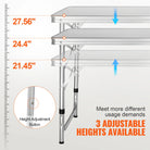 With three adjustable height levels—21.45", 24.4", and 27.56"—this table adapts to both adults and kids. The X-shaped support frame ensures stability on uneven ground, giving you a secure cooking station wherever you are.