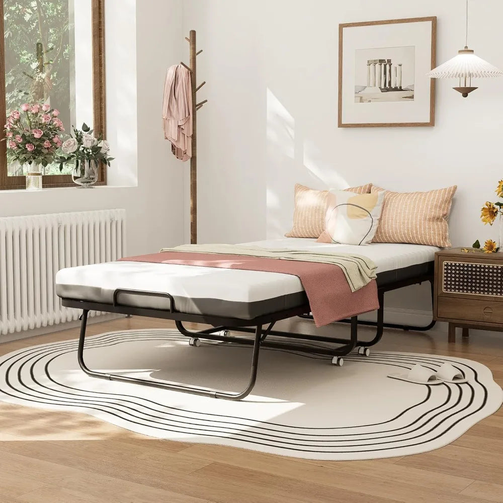 Folding Bed with Memory Foam Mattress – Foldable Rollaway Guest Bed for Adults