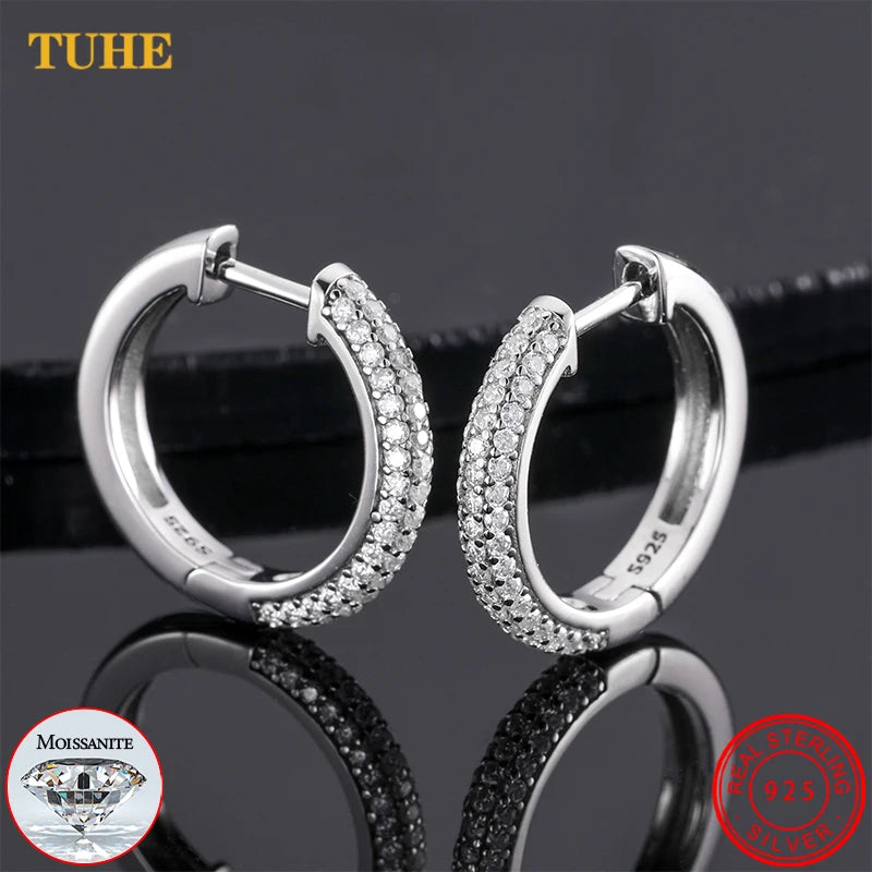 Sparkling Full Real Moissanite Round Hoop Earrings