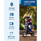 - Long Battery Life: Equipped with a 36V 4Ah lithium battery, offering up to 13.7 miles (90 minutes) of continuous fun per charge.