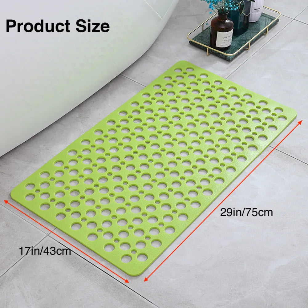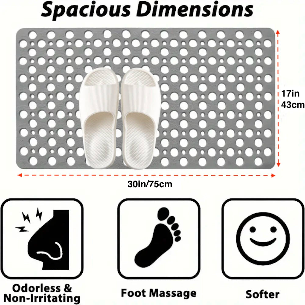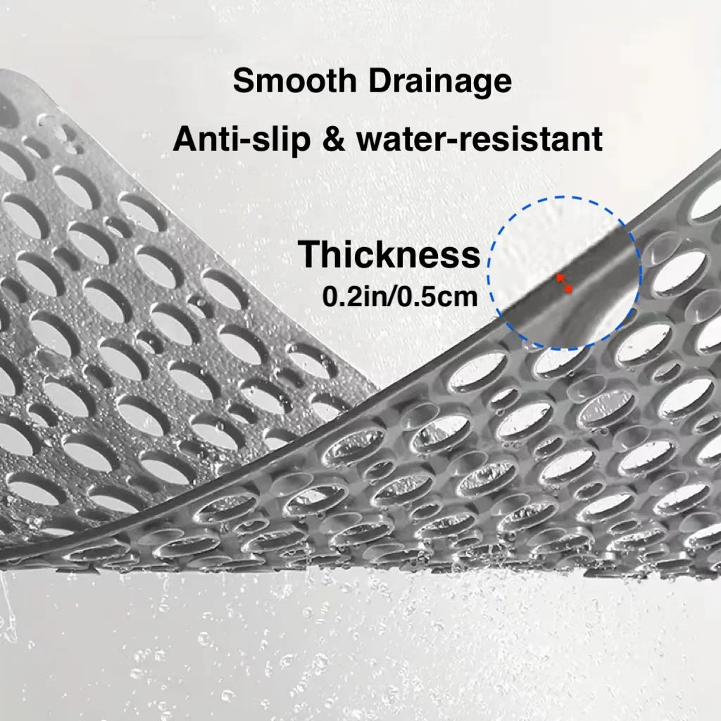 Crafted from high-quality, odorless PVC, this bath and shower mat features a biomimetic suction grip system and round-hole drainage design to prevent slipping while allowing fast water flow and easy cleaning.