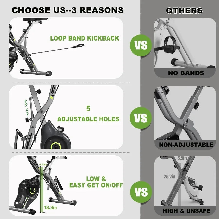 5-in-1 Folding Exercise Bike for Home Cardio – Quiet Magnetic X-Bike with Backrest, 330 lb Capacity & Full-Body Training