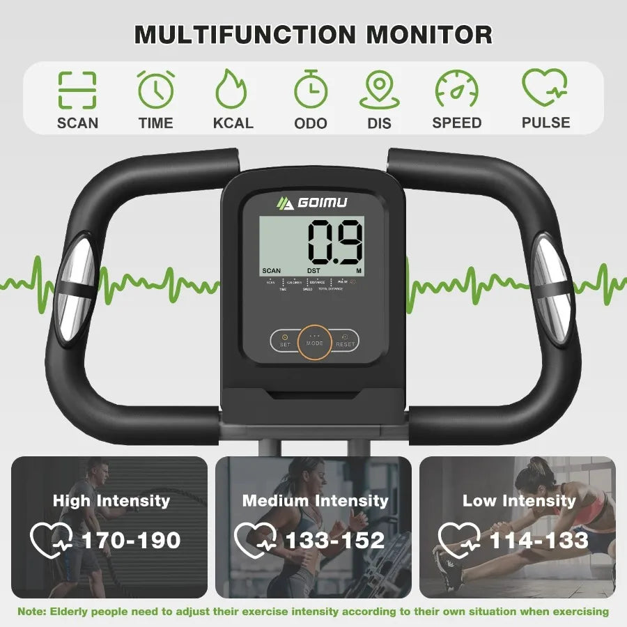 Smooth, silent magnetic resistance allows you to increase intensity gradually. Perfect for seniors, beginners, and advanced users who want low-impact cardio with customizable difficulty.