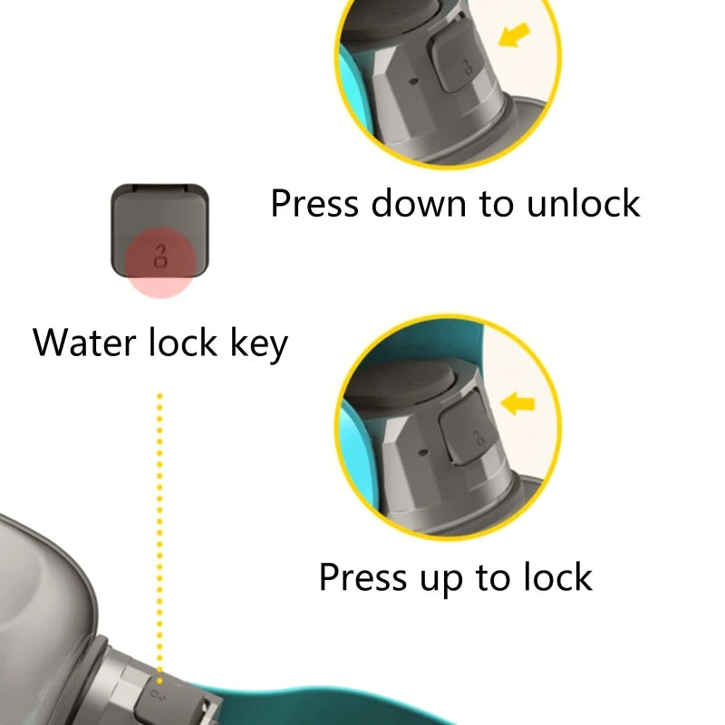 Simple Operation: One-hand design makes it easy to use. Press to dispense water and lock to stop flow—no need to open the lid or carry a separate bowl.