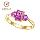 925 Sterling Silver Lab Pink Sapphire Three-Stone Ring – Vintage Romantic Engagement Jewelry