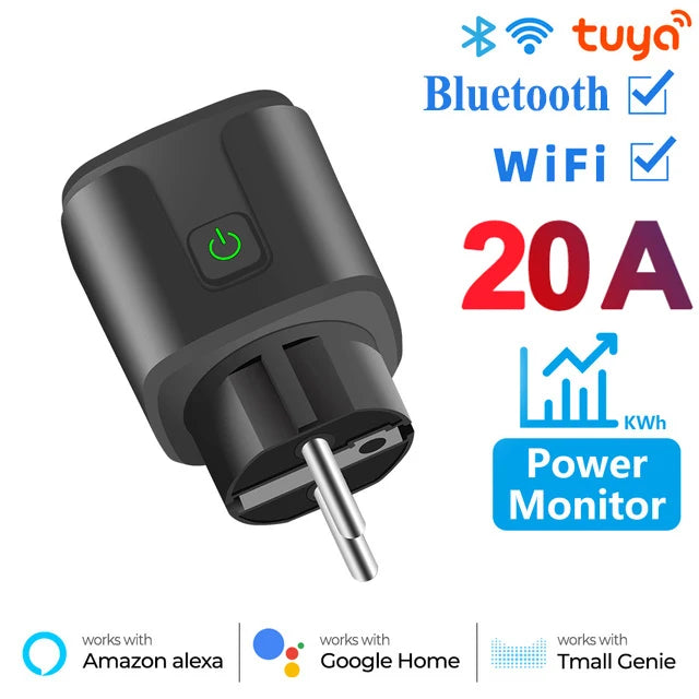 20A WiFi Smart Plug – Smart Socket with Power Monitoring, Alexa & Google Voice Control | Tuya Smart Life App Control (EU/US Standard)