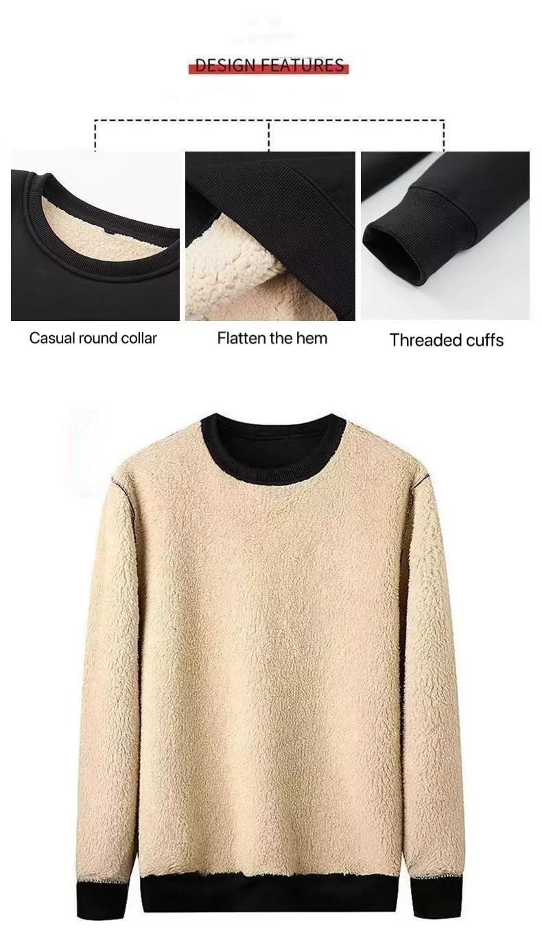 Men’s Thick Velvet Thermal Long Sleeve Top – Winter Warm Casual Round Neck Shirt