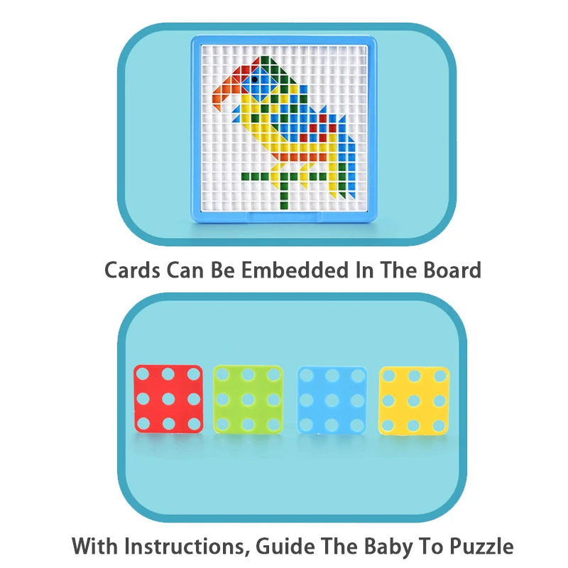 Perfect for curious toddlers and young builders, this interactive mosaic board helps children learn about shapes, colors, and patterns while encouraging problem-solving and creativity.