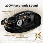 The TRIBIT StormBox Blast 2 Bluetooth Speaker is a powerhouse designed for unforgettable outdoor parties and adventures. With an explosive 200W output and a powerful 80W subwoofer, this portable speaker delivers deep, dynamic sound with precision, ensuring every beat and note is crystal clear. Equipped with dual 45W mid-range drivers, two 15W tweeters, and large passive radiators, the speaker guarantees enhanced bass and fuller sound for any occasion.