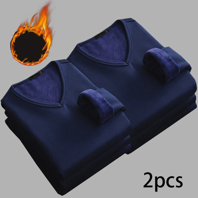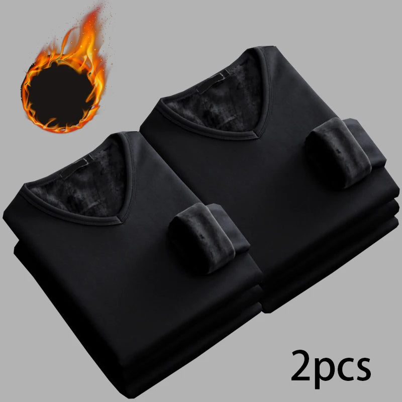 Men’s V-Neck Velvet Thermal Top | Thick Warm Fleece-Lined Long Sleeve Shirt Winter Base Layer M–4XL – Ideal Christmas Gift