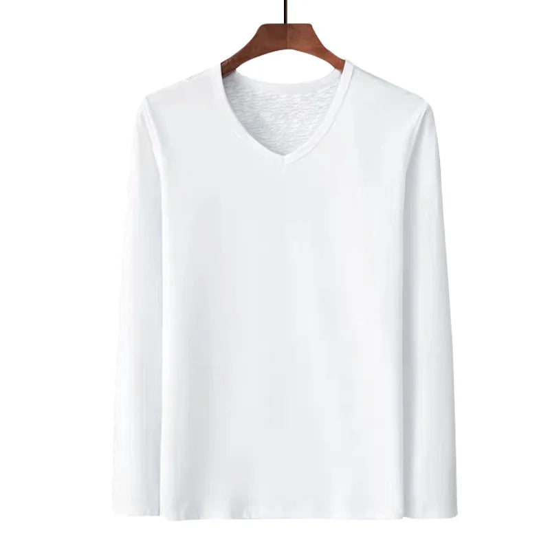 Men’s Thick Velvet V-Neck Thermal Top – Winter Warm Long Sleeve Shirt
