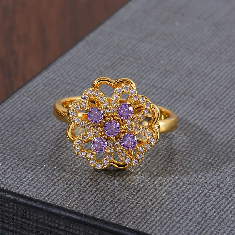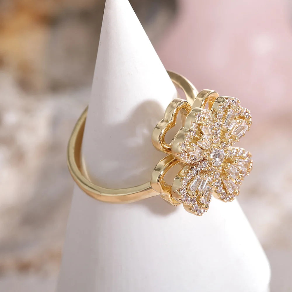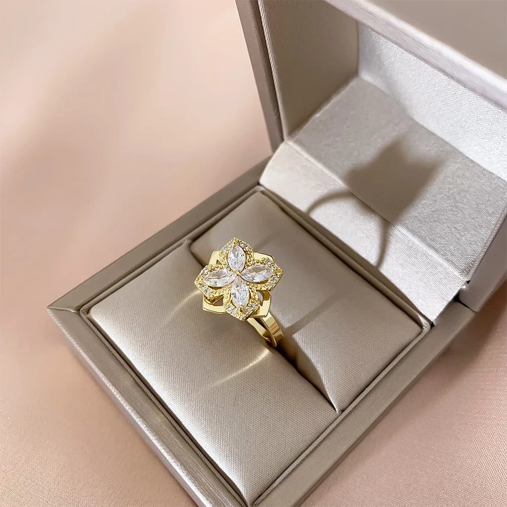 Classic Plant Cubic Zirconia Rotatable Ring – Timeless Elegance for Any Occasion