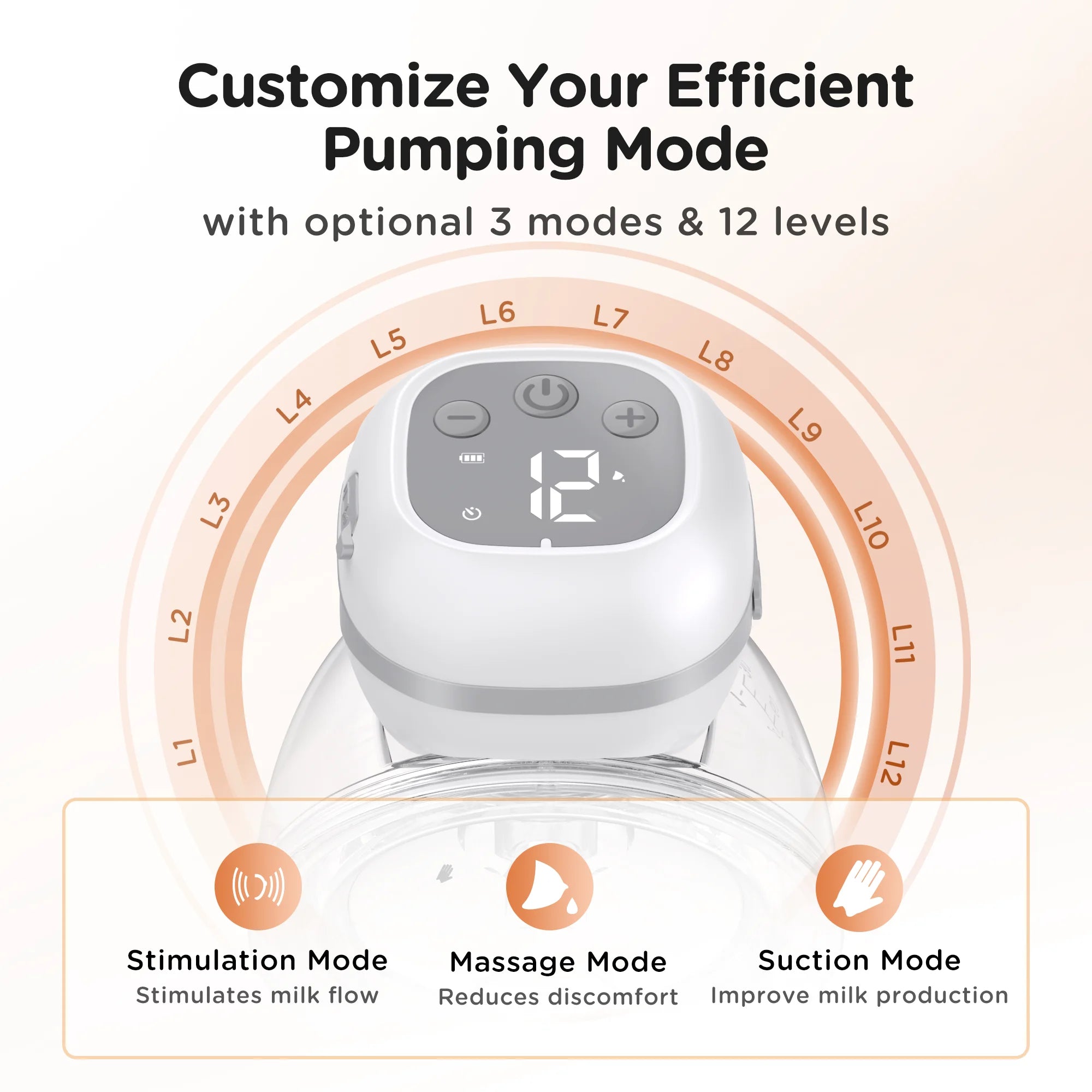Unlike traditional pumps, this upgraded model offers 12 suction levels with 3 custom modes (Stimulation, Massage, and Suction), ensuring a tailored pumping experience. Perfect for first-time moms and experienced users, the pump can effectively support nipple stimulation, milk letdown, and milk collection with adjustable intensity to prevent discomfort.