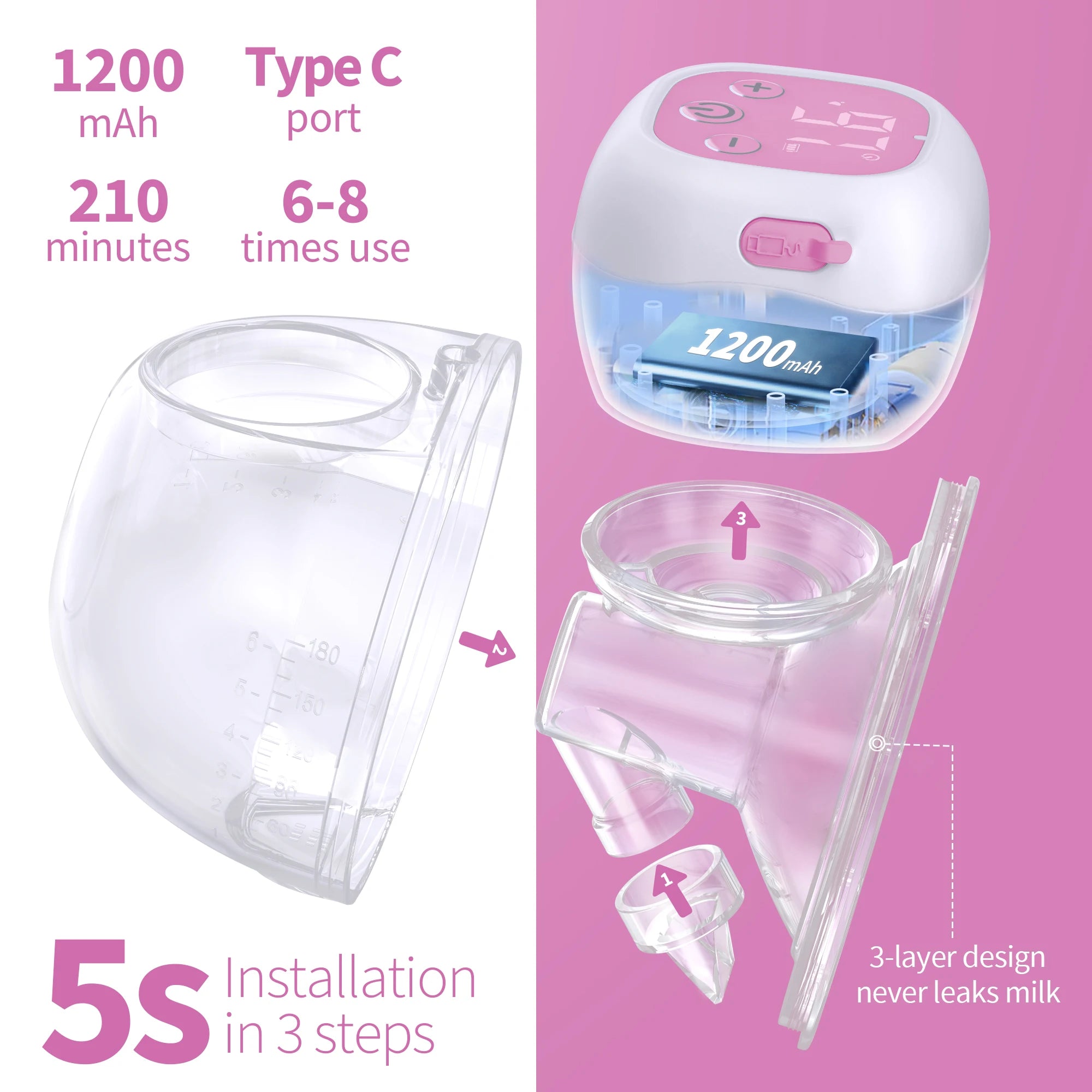 The upgraded 1200mAh battery supports up to 6–8 pumping sessions on a single charge—ideal for busy daily routines. The motor runs at <40db, ensuring quiet, discreet use, even while your baby sleeps.