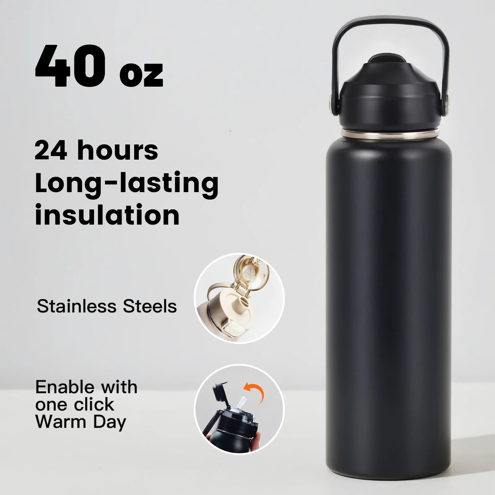 Stay hydrated on the go with this 40oz insulated water bottle, designed for durability, performance, and everyday convenience. Whether you're hitting the gym, traveling, or working long hours, this stainless steel vacuum flask ensures your drinks stay cold or hot for hours—without spills or mess.