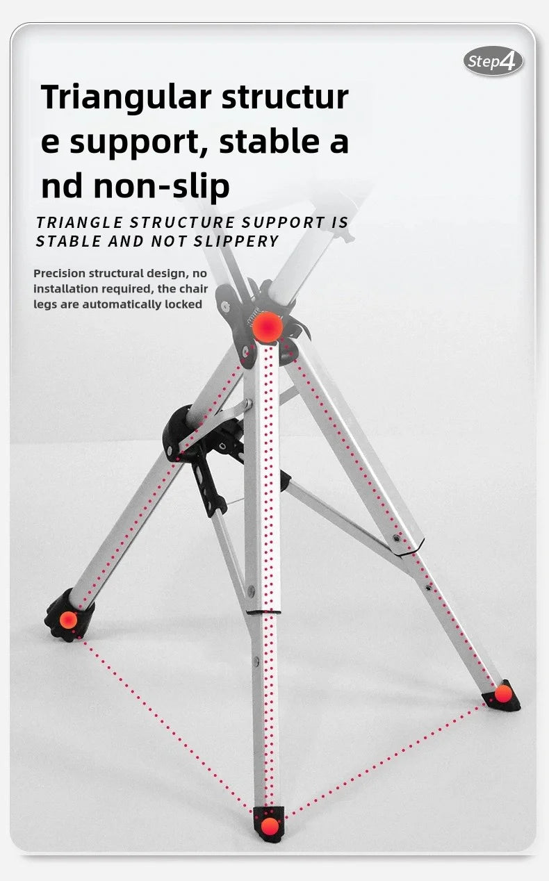 The tripod base ensures balanced support, while integrated handrails provide extra security and comfort while sitting or standing.