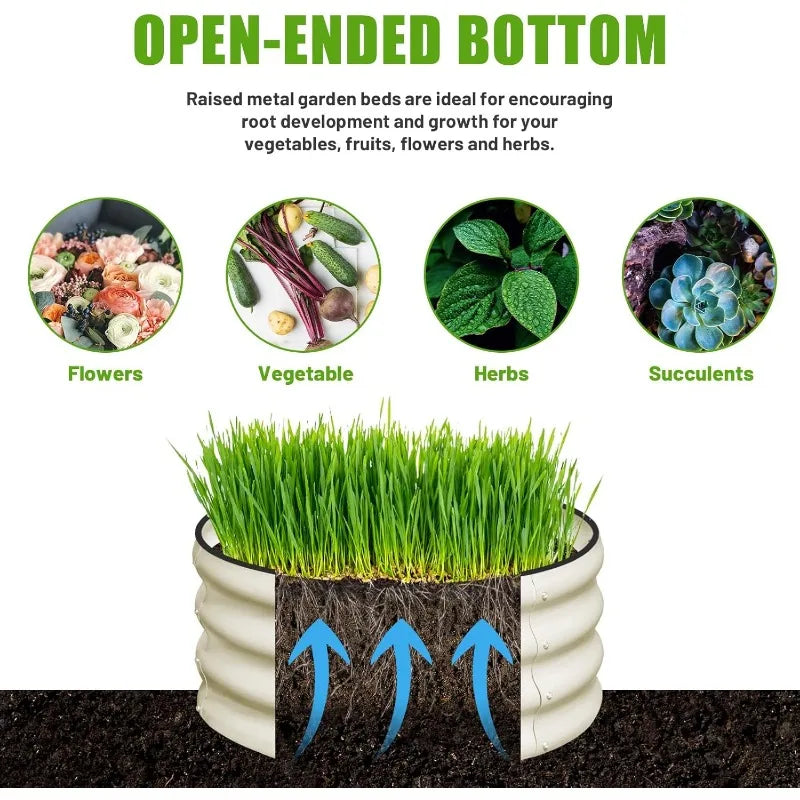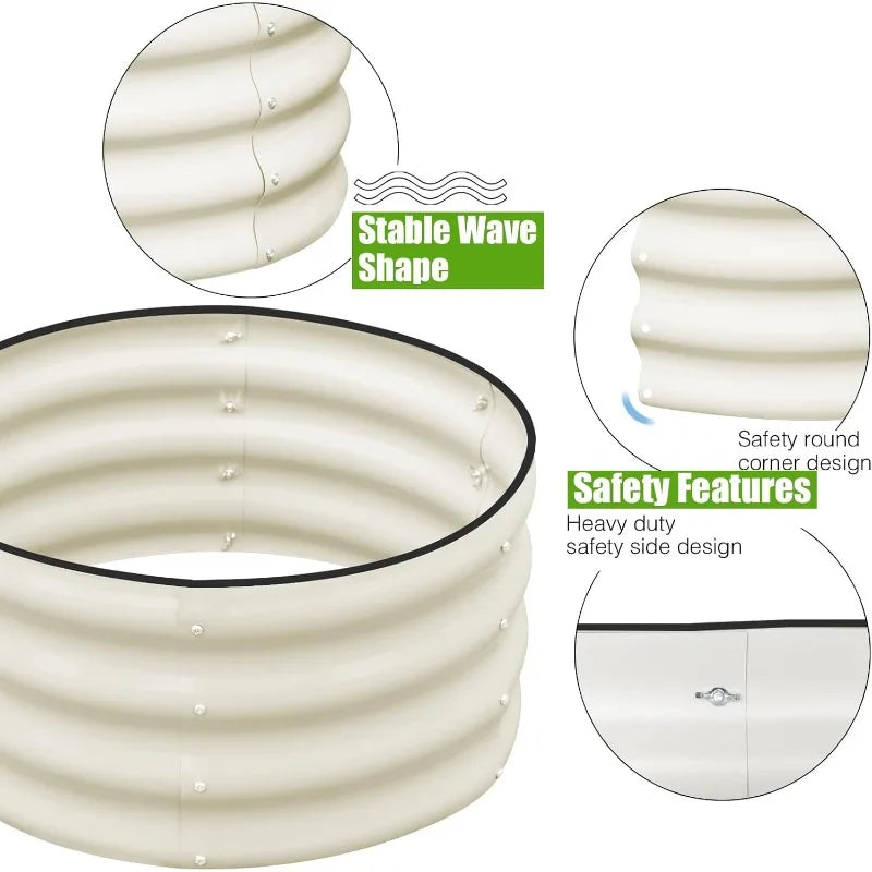 3 Pcs 2x2x1ft Round Galvanized Raised Garden Bed Kit – Outdoor Metal Planter Box for Planting Plants, Vegetables, and Flowers (White)