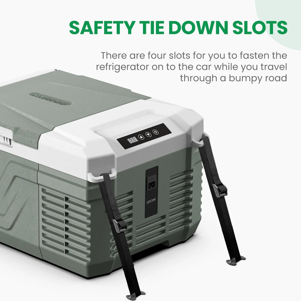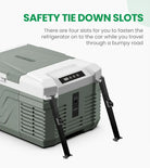 Equipped with a sturdy handle, secure latch, and tie-down slots, this mini fridge is easy to carry and secure in your car or RV. Its durable construction ensures long-term reliability in any environment.
