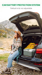 Compatible with 12V/24V DC and 100V-240V AC, this car fridge works in your vehicle, RV, or even at home. Built-in battery protection prevents your vehicle’s battery from draining, giving you peace of mind on long journeys.