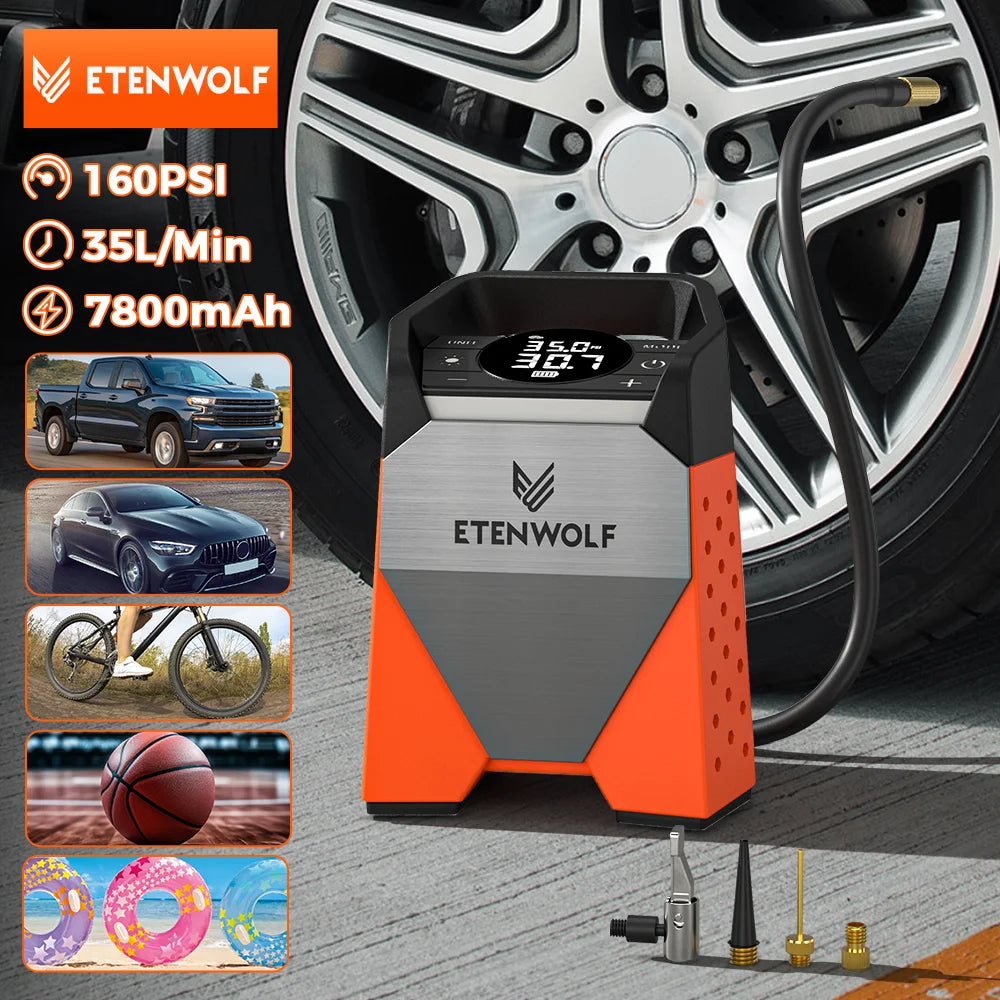 • Powerful 160 PSI Inflation: High-speed output up to 22L/min, quickly fills car tires, truck tires, bicycles, and sports balls in under a minute.