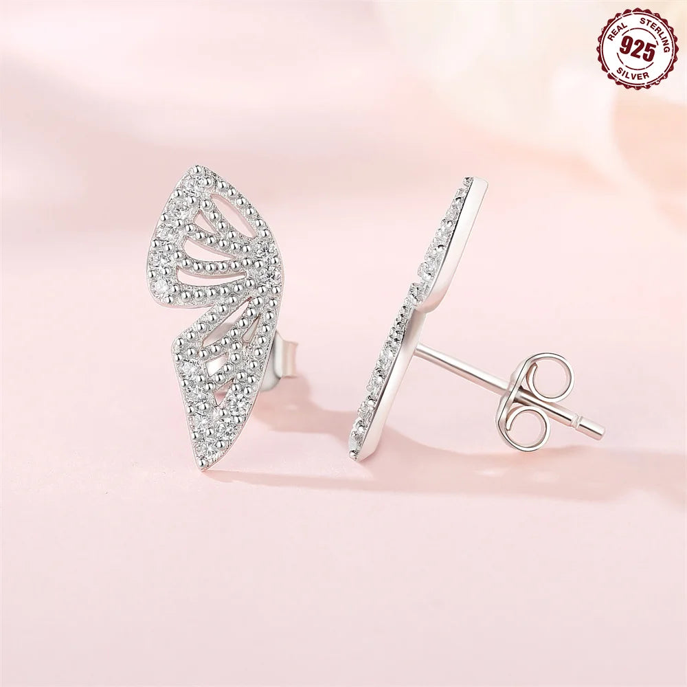 925 Sterling Silver Exquisite Butterfly Wing Stud Earrings