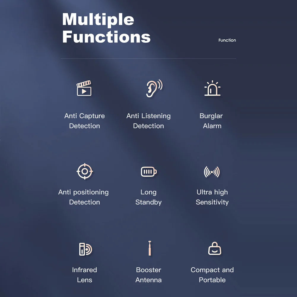 Protect your privacy with the T15 Camera Detector & RF Signal Scanner, a powerful anti-spy device designed for personal and professional security. Whether you're traveling, staying at a hotel, or safeguarding your office or car, this compact yet advanced electronic sweeper detects hidden cameras, GPS trackers, WiFi signals, and listening devices with unmatched precision.