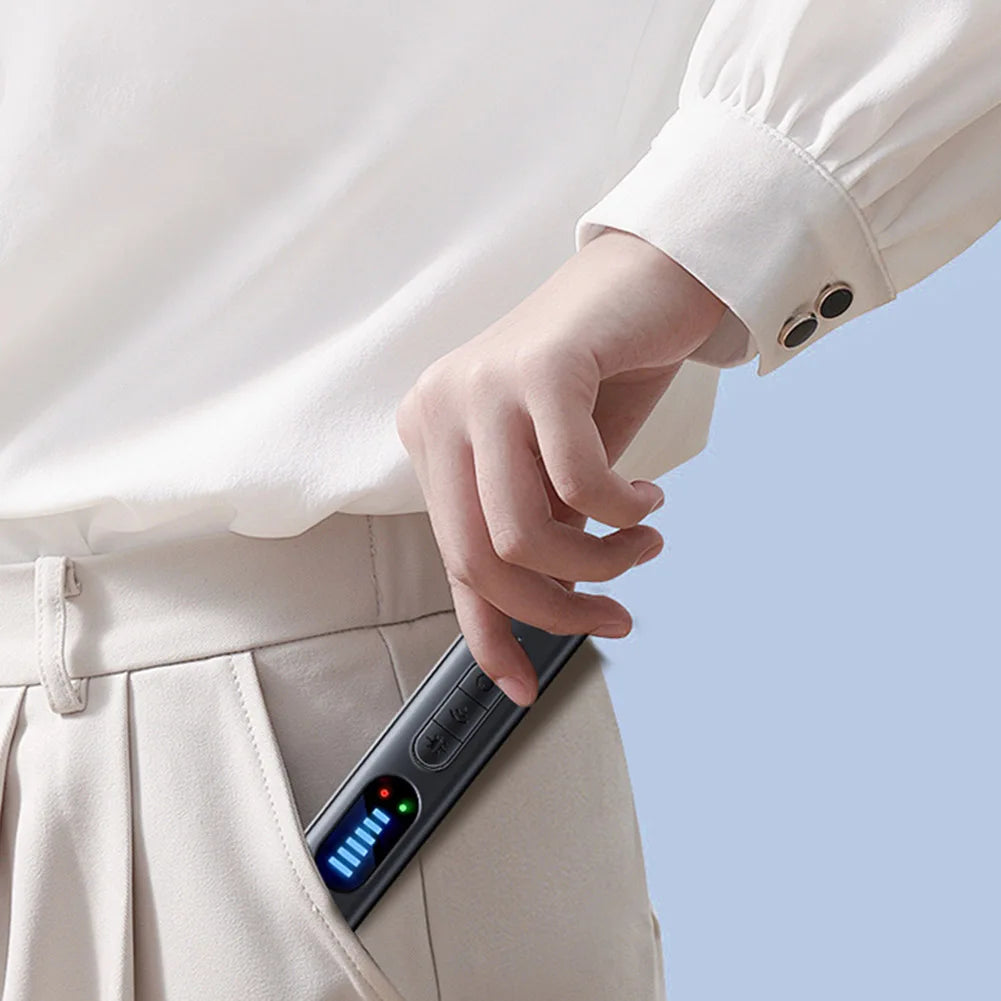 Equipped with AI-powered surveillance detection, the T15 features a detection range of 1MHz to 6.5GHz, covering all common spy devices. The 5-level adjustable sensitivity allows you to pinpoint threats easily, while its infrared red light scanner reveals hidden camera lenses. Its sleek design, durable PC material, and long-lasting rechargeable battery make it ideal for daily protection against unwanted surveillance.