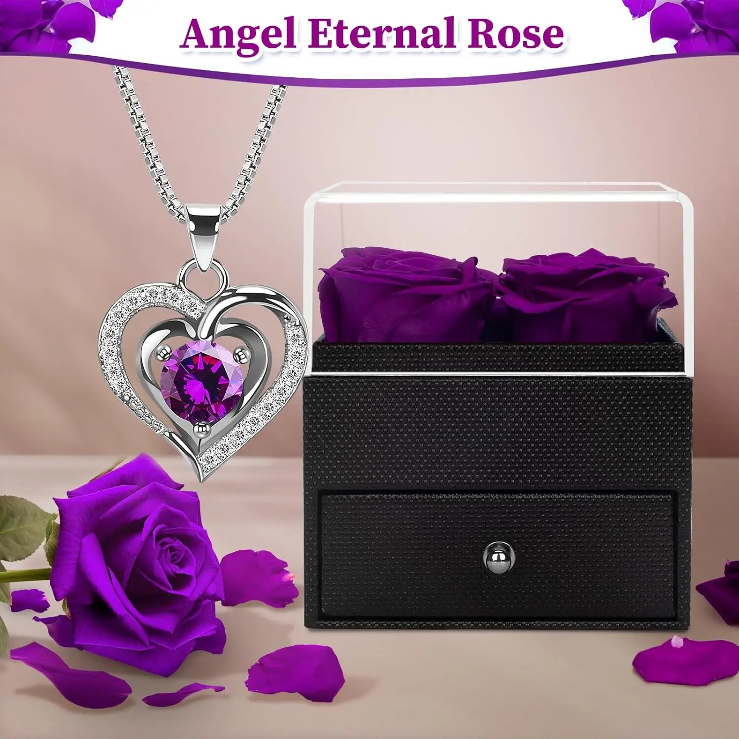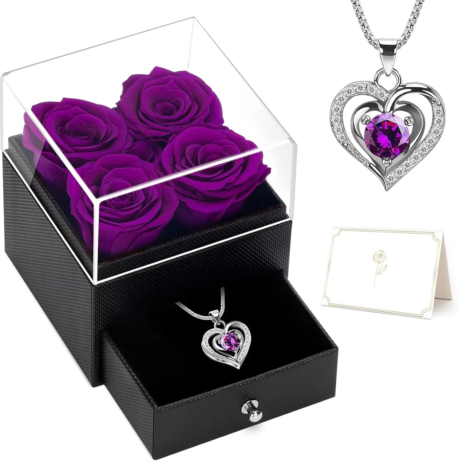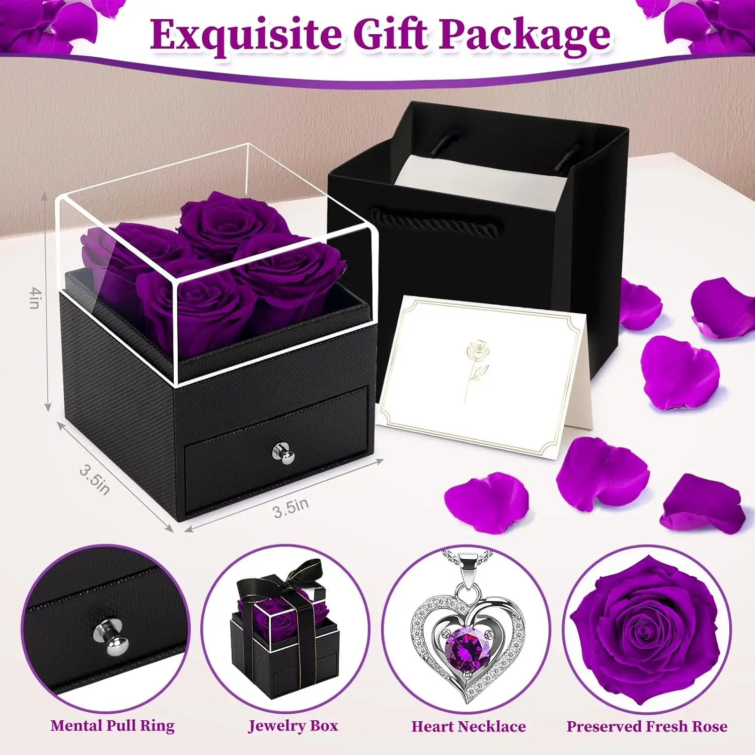 valentines Forever Purple Roses Jewelry Box Gift, Preserved Flowers Gifts for Her, Girlfriend, Wife