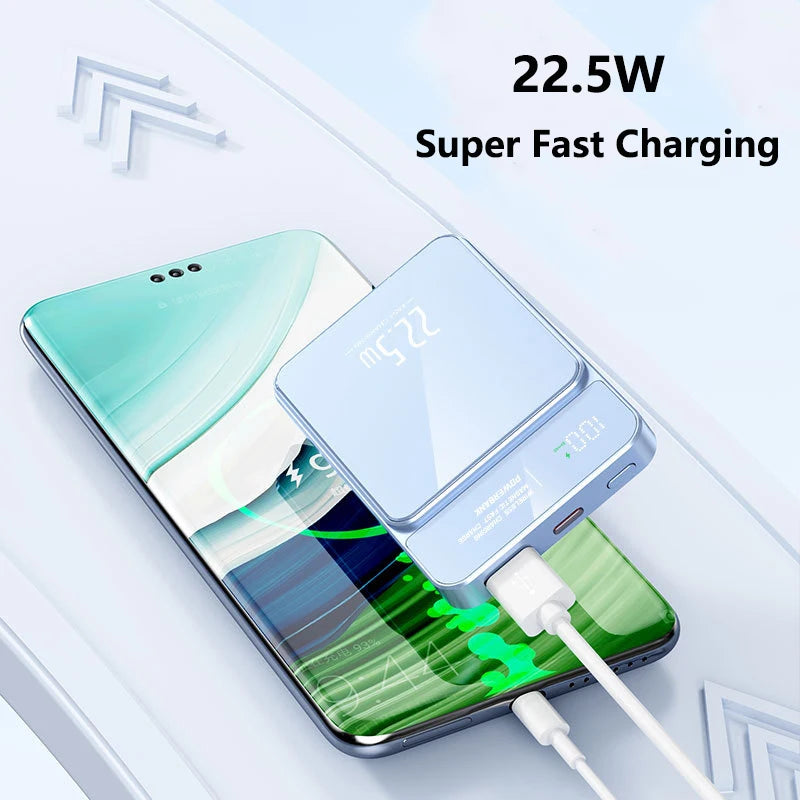 This portable 20000mAh power bank combines MagSafe wireless charging, PD 20W fast charging, and 22.5W supercharge technology — giving you the ultimate solution for powering multiple devices simultaneously.
