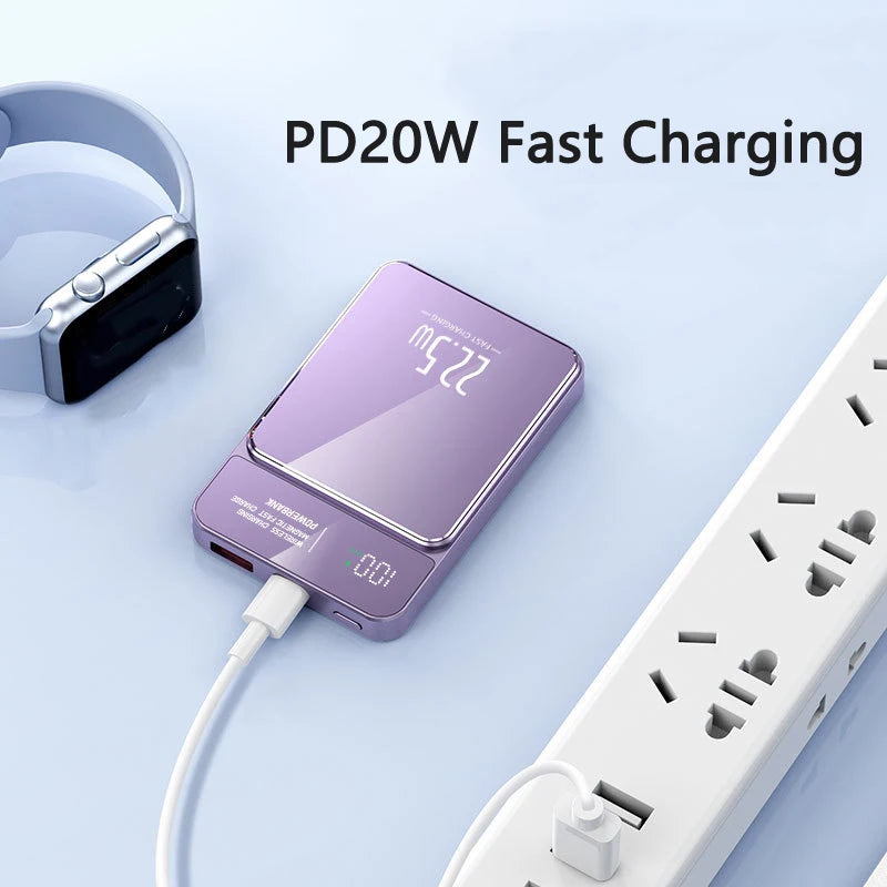 This portable 20000mAh power bank combines MagSafe wireless charging, PD 20W fast charging, and 22.5W supercharge technology — giving you the ultimate solution for powering multiple devices simultaneously.