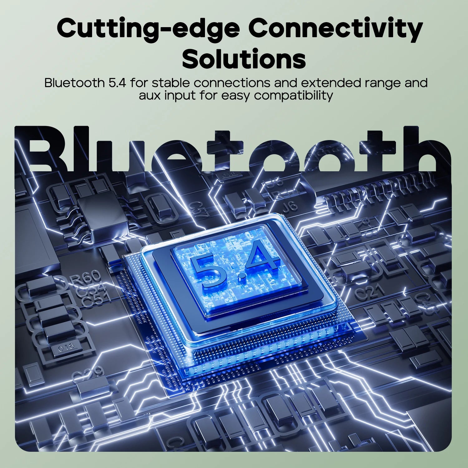 Bluetooth 5.4 Connectivity: Effortlessly stream music with Bluetooth 5.4, offering a reliable range of up to 30 meters (approximately 100 feet). Plus, it features an AUX input for added device compatibility.